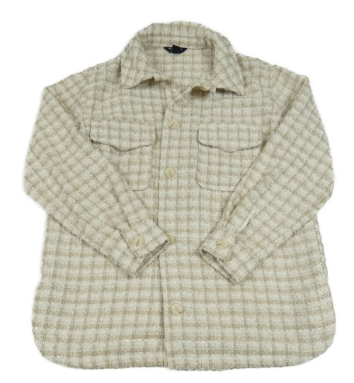 Smetanovo-béžová kostkovaná třpytivá vlněná košilová bunda New Look