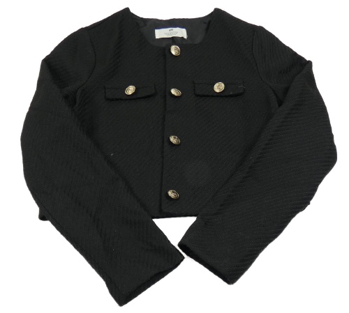 Černý vzorovaný podšitý crop kabátek s gombíky H&M
