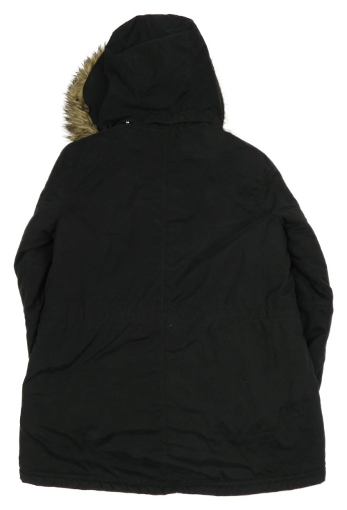 Černá šusťáková zateplená parka s kožešinou a kapucí H&M