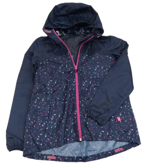 Tmavomodrá šusťáková nepromokavá funkční bunda se vzorem a kapucí Quechua