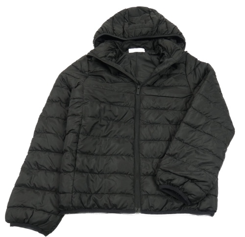 Černá prošívaná šusťáková přechodová bunda s odepínací kapucí H&M