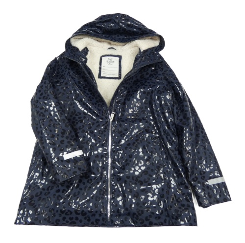 Tmavomodro-černá leopardí nepromokavá zateplená bunda s kapucí M&S