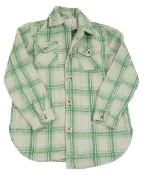 Bílo-zelená kostkovaná vlněná košilová bunda PRIMARK