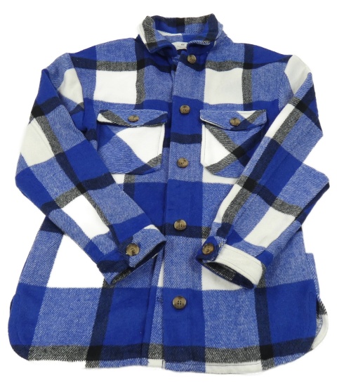 Modro-bílo-černá kostkované vlněná košilová bunda H&M