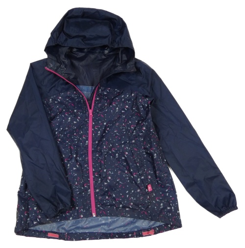 Tmavomodrá šusťáková nepromokavá funkční bunda se vzorem a kapucí Quechua