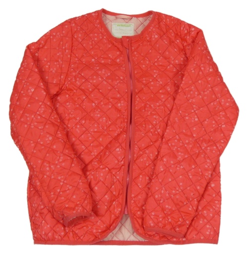 Jahodová květovaná prošívaná šusťáková jarní zateplená bunda Vertbaudet