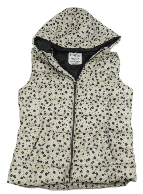 Béžová květovaná šusťáková zateplená vesta s kapucí Page One Young