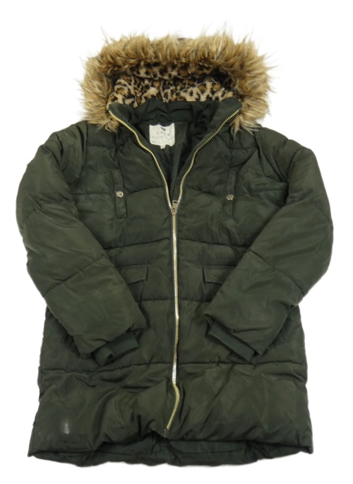 Khaki šusťáková zimní bunda s kapucí s kožešinou F&F