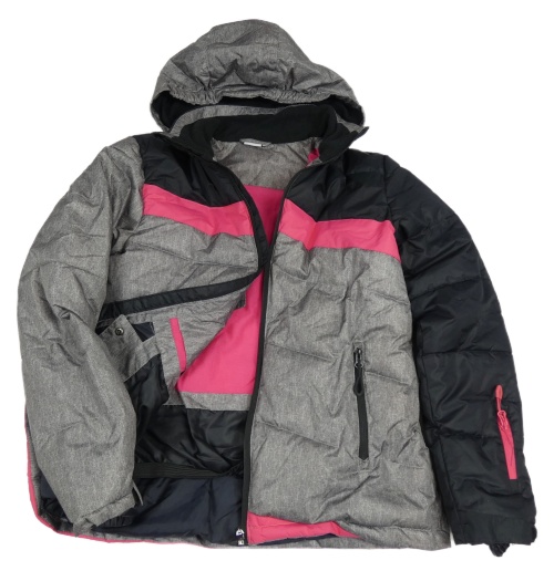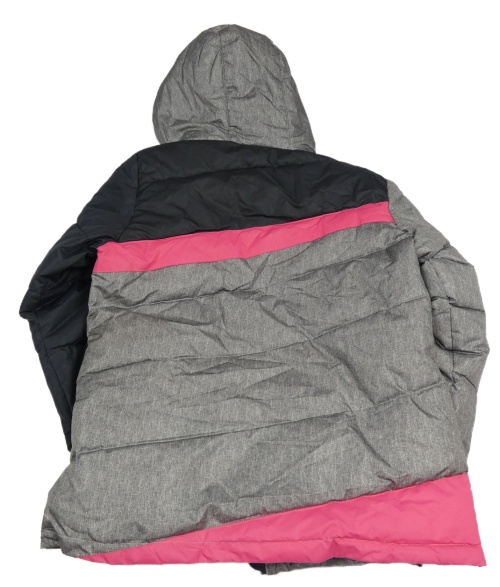 Šedo-černo-růžová šusťáková prošívaná zimní bunda s kapucí Pocopiano