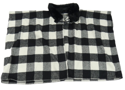 Bílo-černé kostkované vlněné pončo s kožešinovým límcem Nutmeg