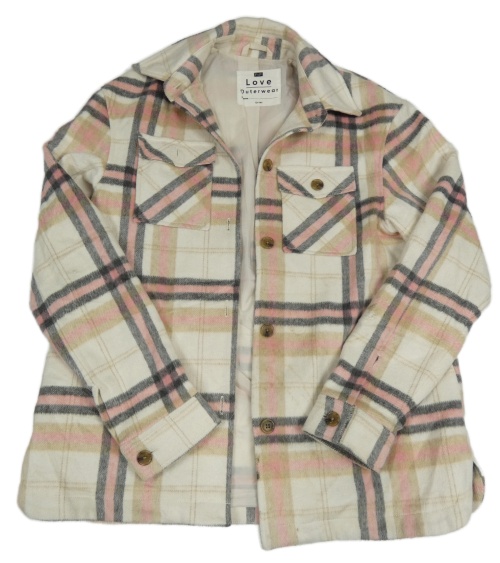 Bílo-béžovo-šedo-růžová kostkovaná košilová vlněná podšitá bunda F&F