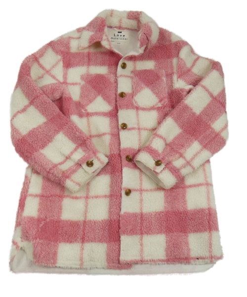 Bílo-růžový kostkovaný huňatý košilový kabát F&F