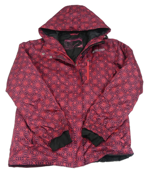 Lilkovo-jahodová vzorovaná šusťáková zimní lyžařská bunda s nápisem a kapucí C&A