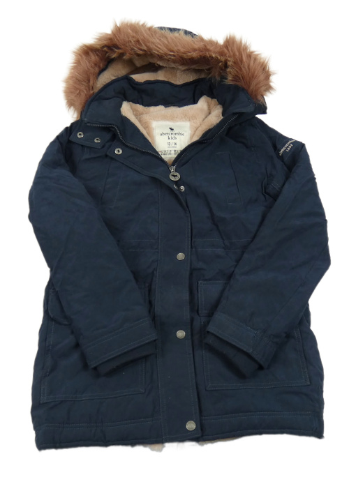 Tmavomodrá šusťáková zimní parka s kapucí s kožešinou Abercrombie&Fitch
