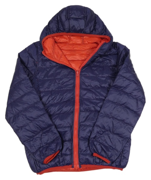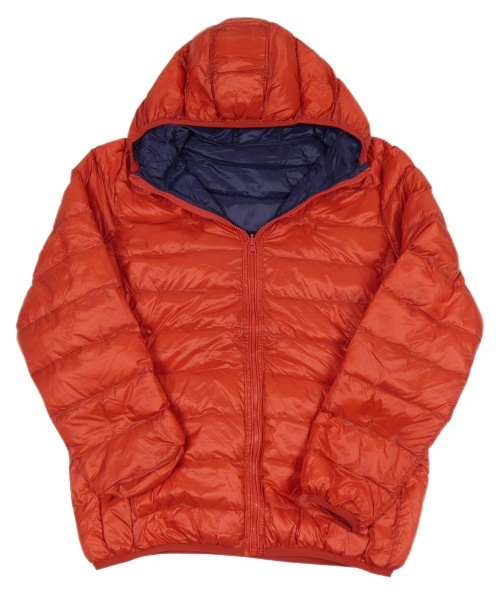 • Červená šusťáková prošívaná zateplená oboustranná bunda s kapucí