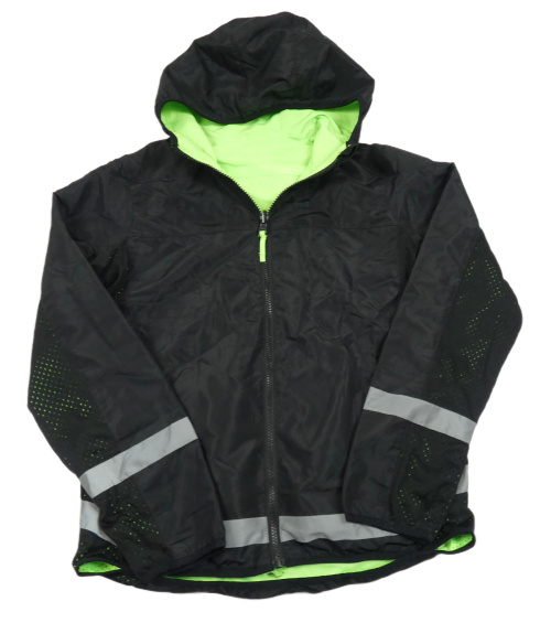 Neonově zelená šusťáková funkční jarní oboustranná bunda se znakem a kapucí