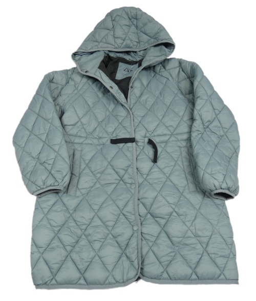 Šedomodrý šusťákový prošívaný zateplený kabát s kapucí Zara