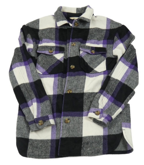 Černo-fialovo-bílá kostkovaná vlněná košilová bunda H&M