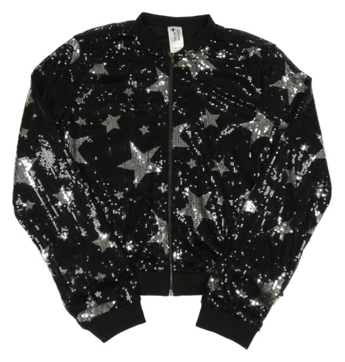 Černo-stříbrná flitrová podšitá crop bunda C&A