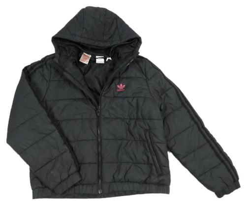 Černá prošívaná šusťáková zimní bunda s kapucí Adidas