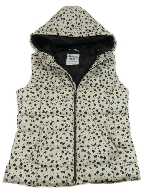 Béžovo-černá květovaná šusťáková zateplená vesta s kapucí Page one young