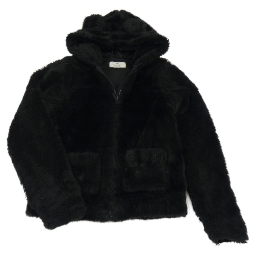 Černá kožešinová podšitá crop bunda s kapucí H&M