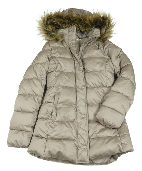 Šedohnědý prošívaný šusťákový zimní kabát s kapucí s kožešinou H&M