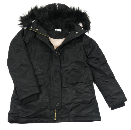 Černá šusťáková zimní bunda s kapucí s kožešinou H&M