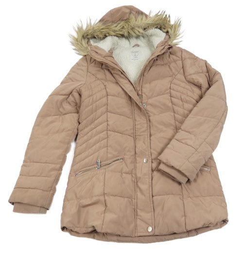 Starorůžová šusťáková zimní bunda s kapucí s kožešinou Primark