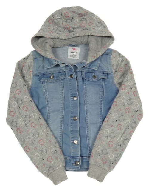 Modro-šedá riflovo/tepláková bunda se sluchátky a kapucí Pepperts
