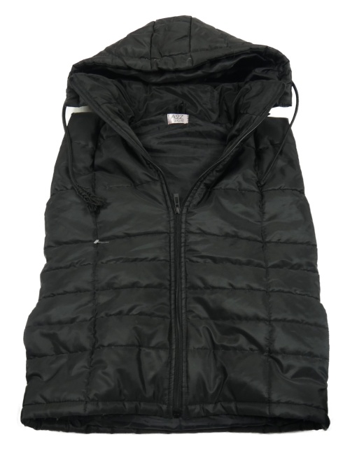 Černá prošívaná šusťáková zateplená vesta s odepínací kapucí A2Z4 Kids