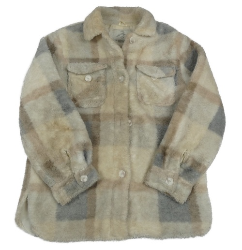 Béžovo-šedá kostkovaná huňatá podšitá košilová bunda George