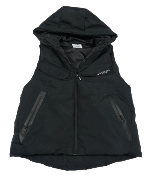 Černá kostkovaná šusťáková zateplená vesta s nápisy a číslem a kapucí ZARA