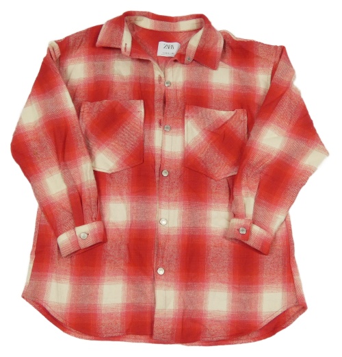Červeno-smetanová kostkovaná košilová bunda Zara