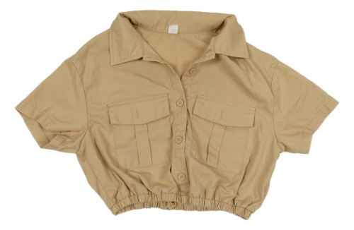 Béžová plátěná crop košilová bunda Shein