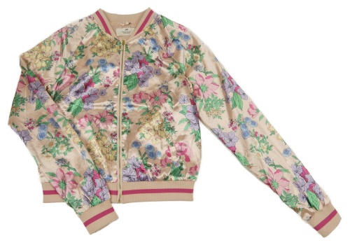 Světlerůžovo-barevný květovaný saténový crop jarní křivák H&M