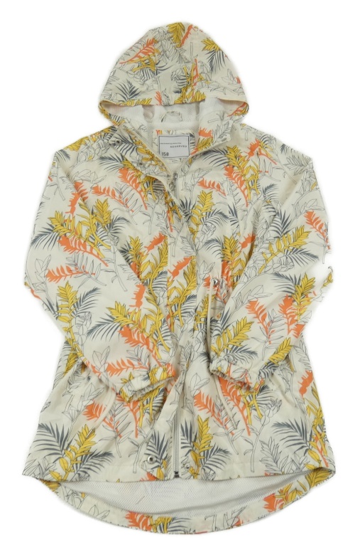 Smetanovo-barevná vzorovaná šusťáková jarní parka s listy a kapucí Reserved