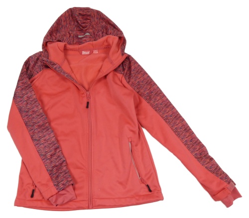 Jahodovo-melírovaná softshellová bunda s kapucí crivit