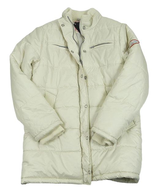 Smetanová prošívaná šusťáková zimní bunda s nášivkou