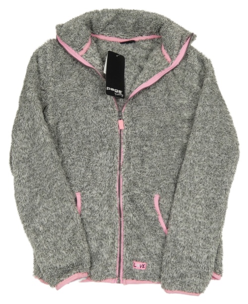 Nové - Šedá chlupatá bunda s růžovým lemem Page one young vel. 176