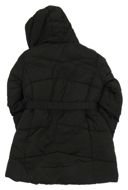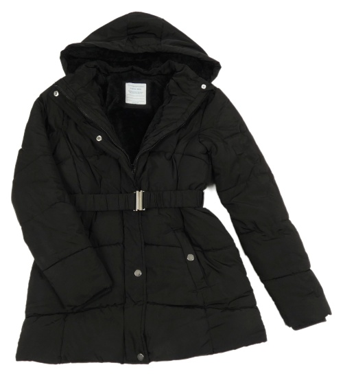 Černý šusťákový zimní kabát s páskem a kapucí Primark