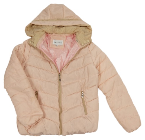 Světlerůžová prošívaná šusťáková zimní bunda s odepínací kapucí