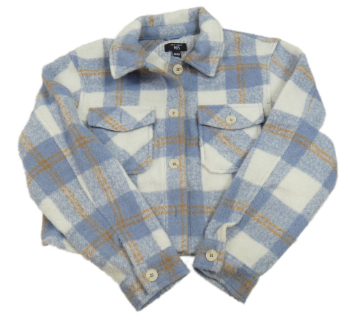 Bílo-světlemodro-modro-hnědá kostkovaná košilová crop bunda New Look