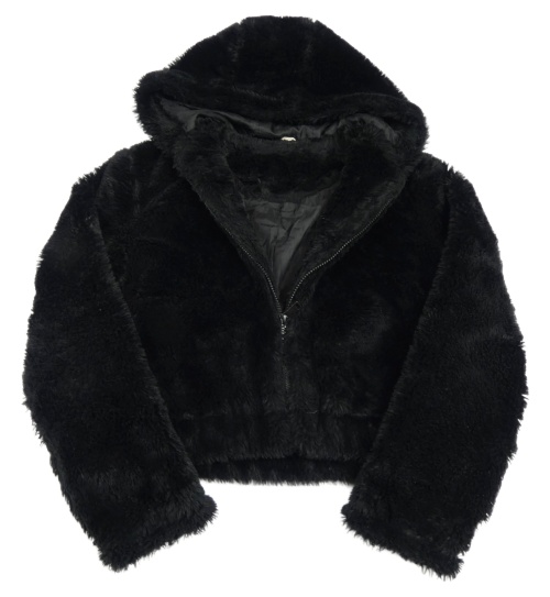 Černá kožešinová podšitá crop bunda s kapucí Matalan