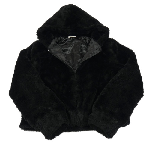 Černá kožešinová podšitá crop bunda s kapucí Candy Couture