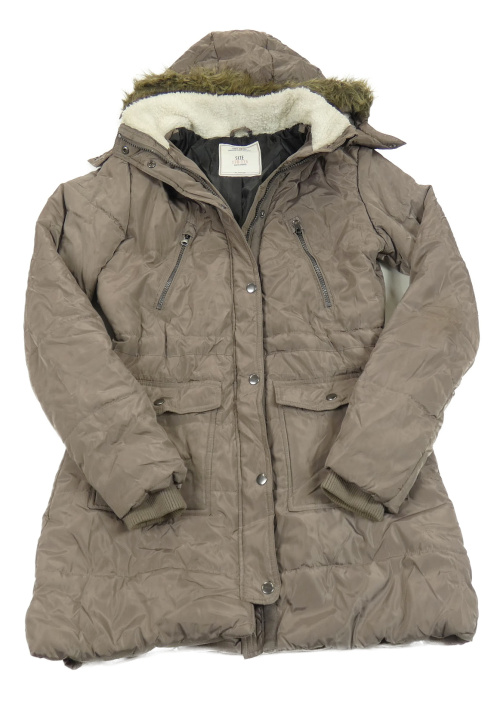 Hnědý šusťákový zimní kabát s kapucí
