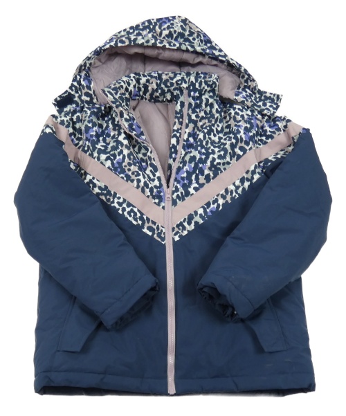 Tmavomodro-fialová vzorovaná šusťáková zimní bunda s kapuící