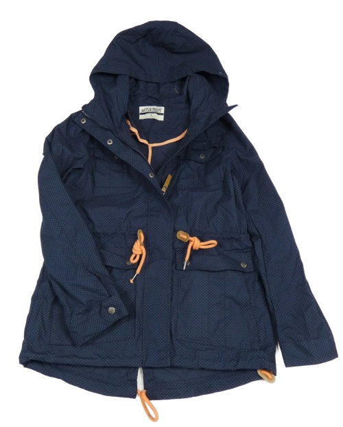 Tmavomodrá puntíkatá plátěná parka s kapucí