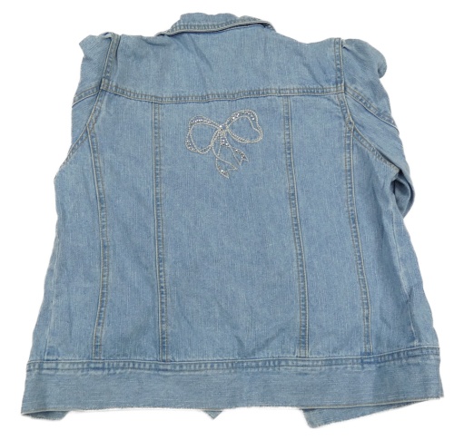 Světlemodrá riflová crop bunda s kamínky a mašlí a límečkem George