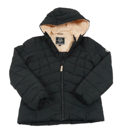Černá prošívaná šusťáková přechodová bunda s nášivkou a kapucí C&A